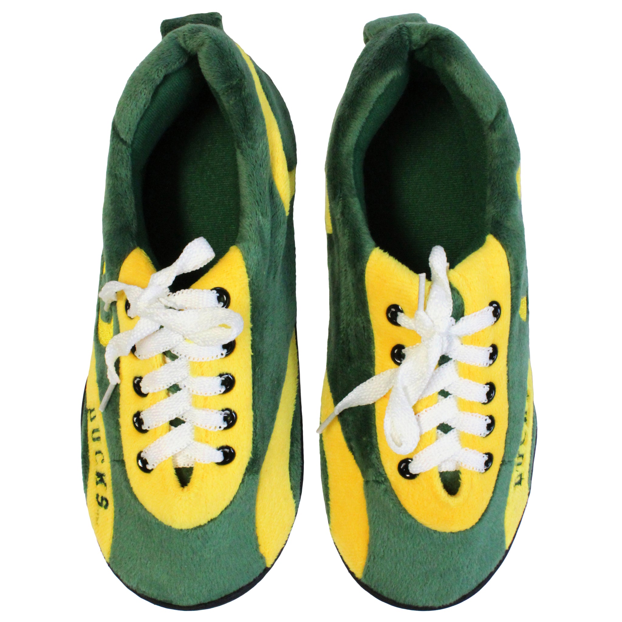 Cheer on The Ducks in these super cozy All Around Slippers. These University of Oregon festive Slippers were designed to take you from your couch to class in comfort and style with their durable rubber-soled bottoms. Same great comfort as our Happy Feet Slippers with brand new versatility! Slippers have the officially licensed Oregon Ducks logo.