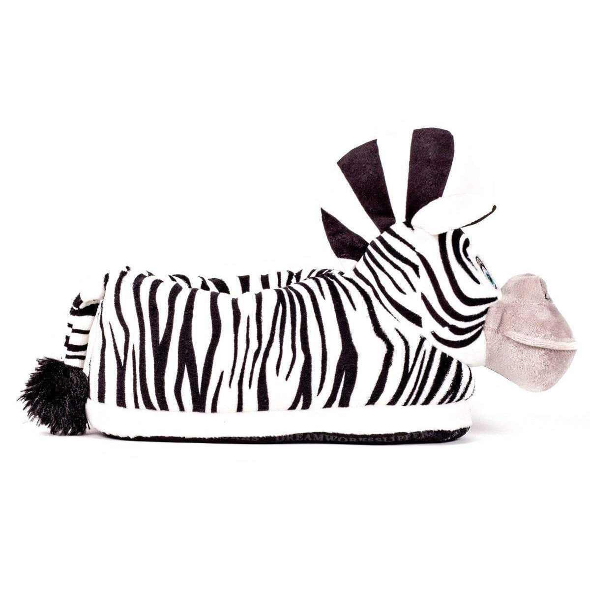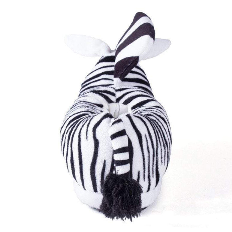 Show your stripes with our zebra slippers! This fun loving zebra wants to keep your feet warm and cozy! Get your hooves into these cushy slippers and you'll never want to take them off! 100% Polyester material, 1 Inch foam rubber and non-skid bottoms.