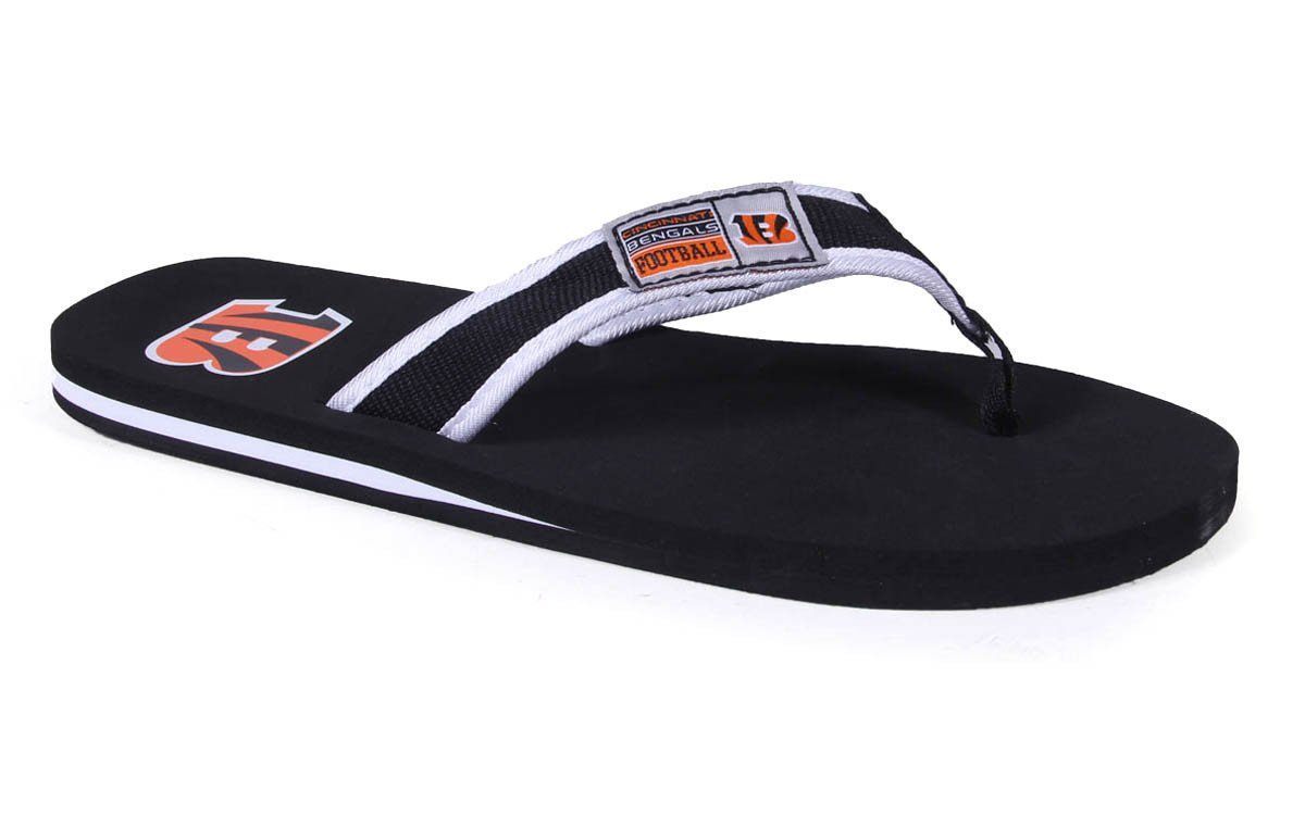 Support your Cincinnati Bengals with these unisex Contour Flops. These flip flops come in Orange and Black team colors and include the Bengal team logo. Makes the perfect gift!