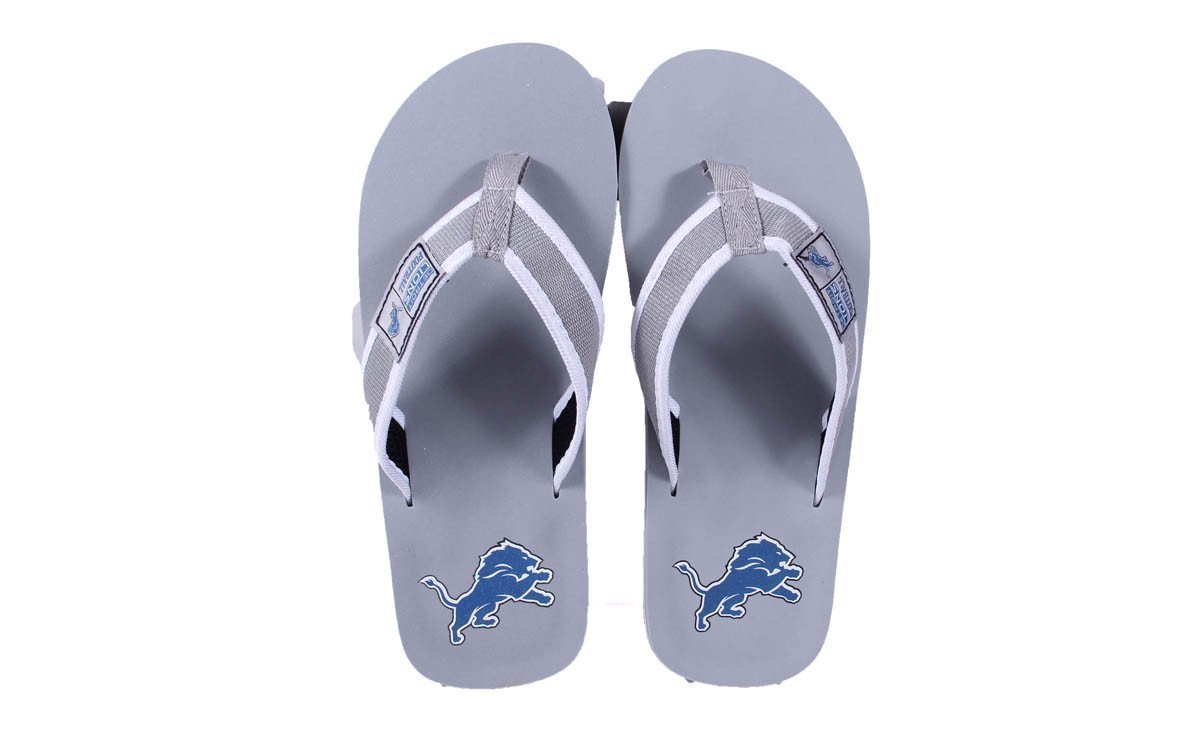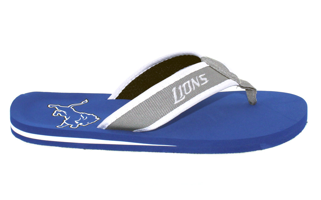 Support your Detroit Lions with these unisex Contour Flip Flops. These flip flops come in Silver and Blue team colors and include a Blue Lion outlined in White and Black. Makes the perfect gift!