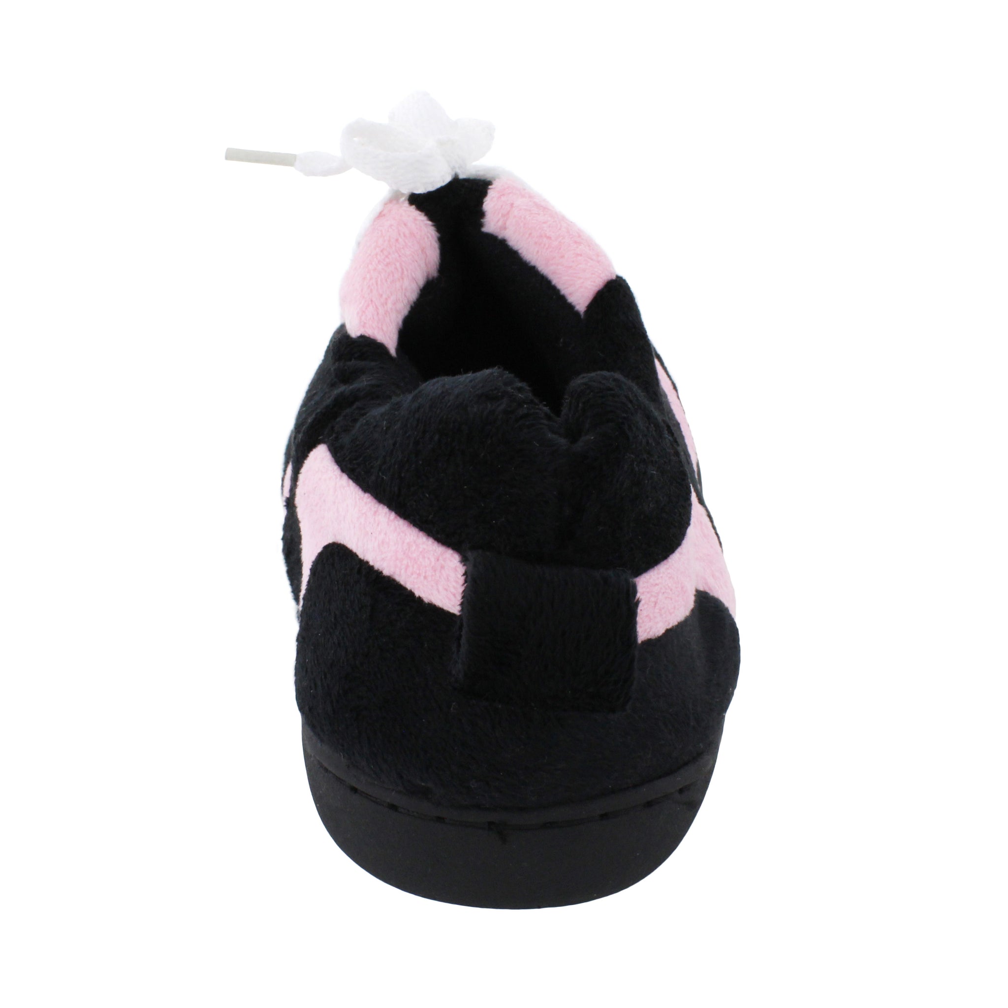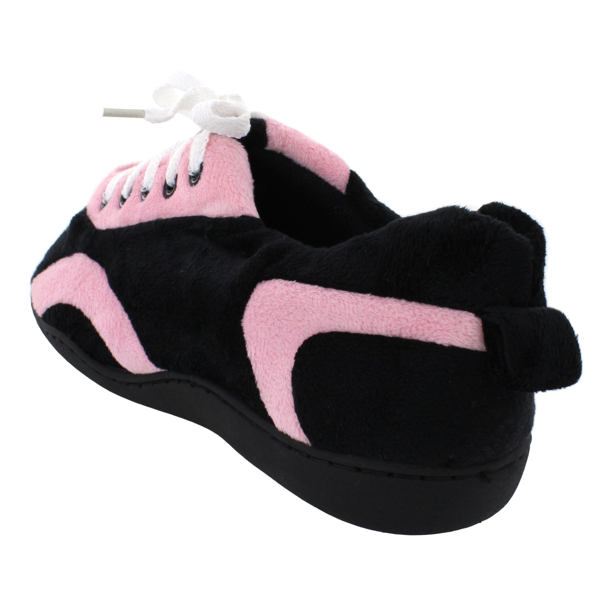 Feeling like you want to stand out... "just a little"... ?   Our black with pink color combination keeps you minimally out of the limelight yet extremely stylish as any pink lover would care to be.  Try these new Pink and Black rubber soled Happy Feet All Around slippers.  Same great comfort, brand new versatility!