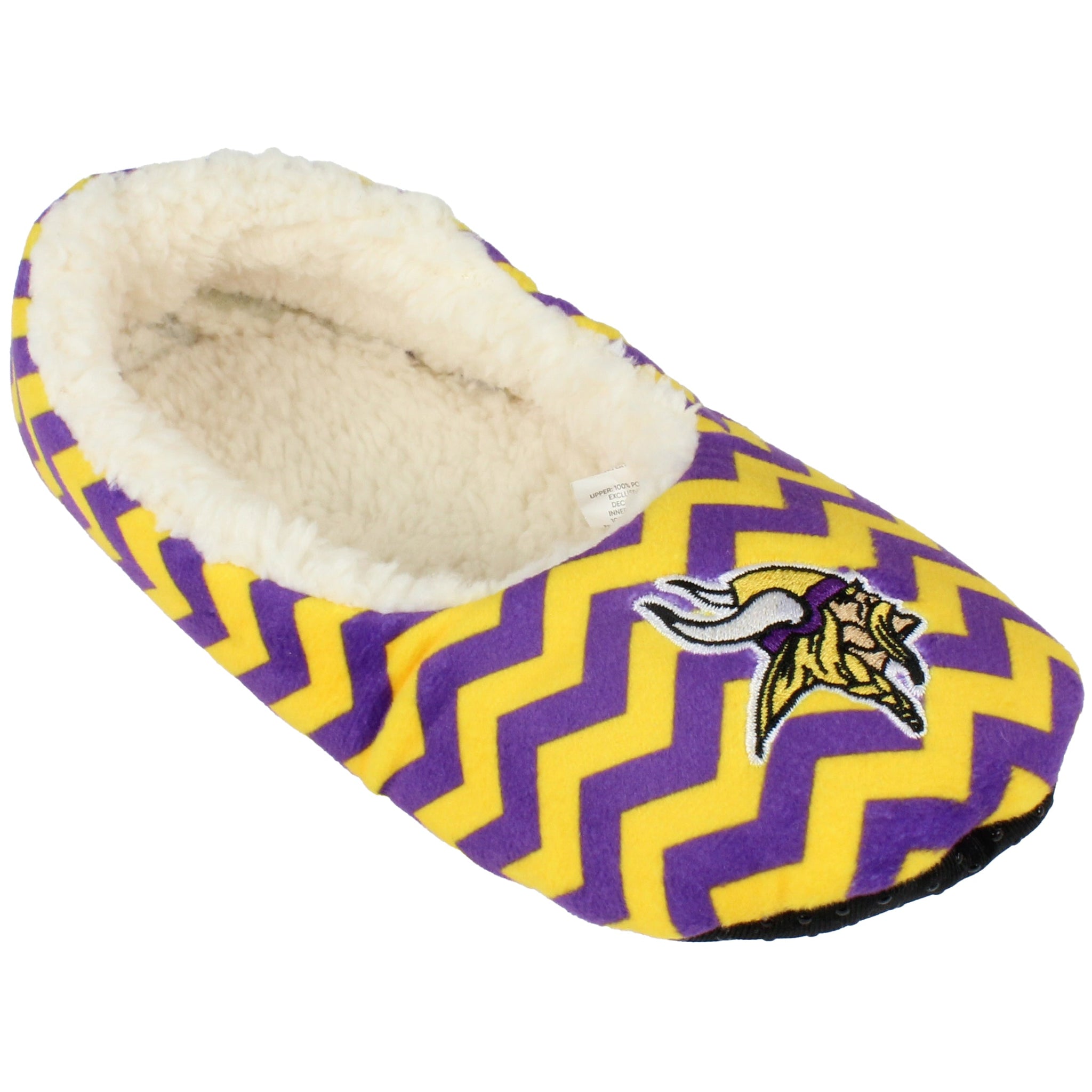 Comfy Feet's cute little chevron pattern slippers are a great, less expensive alternative to our big original slippers. Almost like a slipper sock with the thinner comfortable plush polyester lining, we stuffed a thin memory foam sole to give it a perfectly comfy footbed. The super colorful plush really give the slippers the finishing pop to go with the popular chevron pattern. Although, they are unisex, they are typically worn by the diehard women NFL fans. Sized MD - XL. Medium fits 4 to 5.5. Large fits 6 - 7.5. X-Large fits 8 - 9.5. Made in China. Comfy Feet slippers are officially licensed by FOCO.