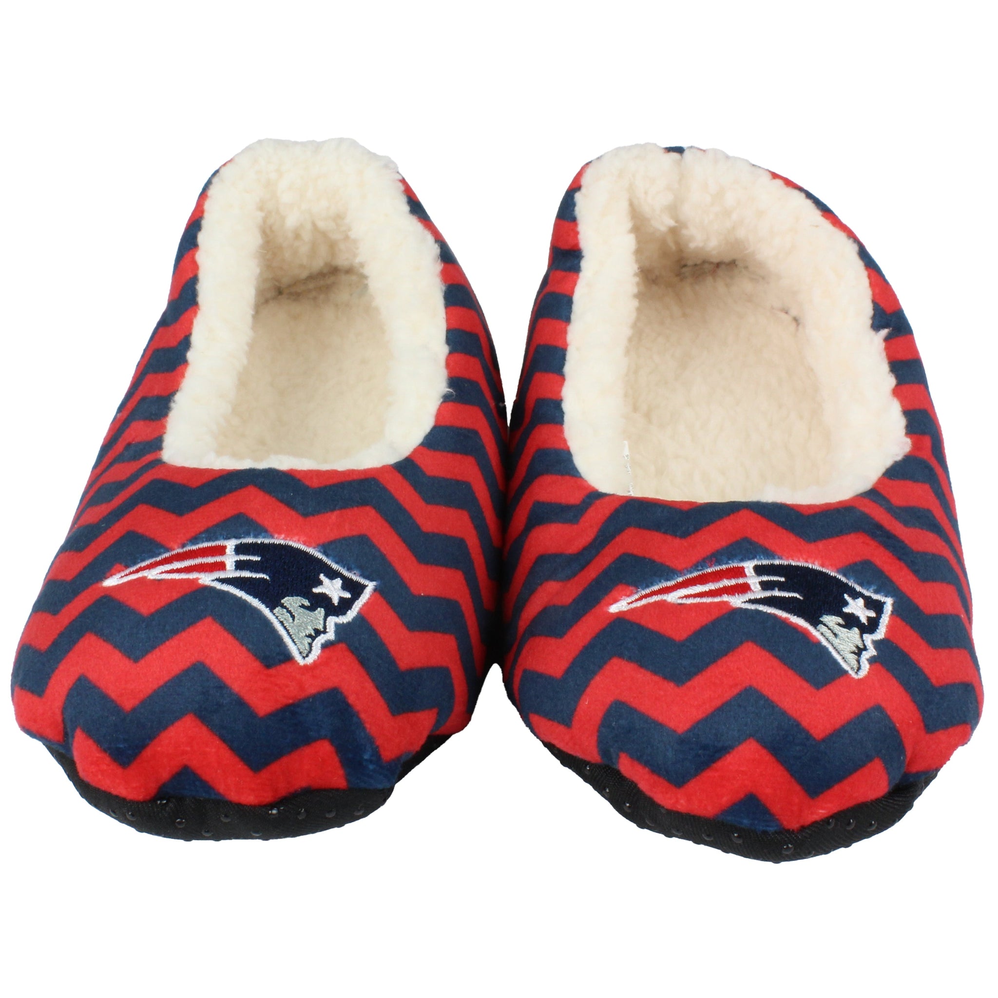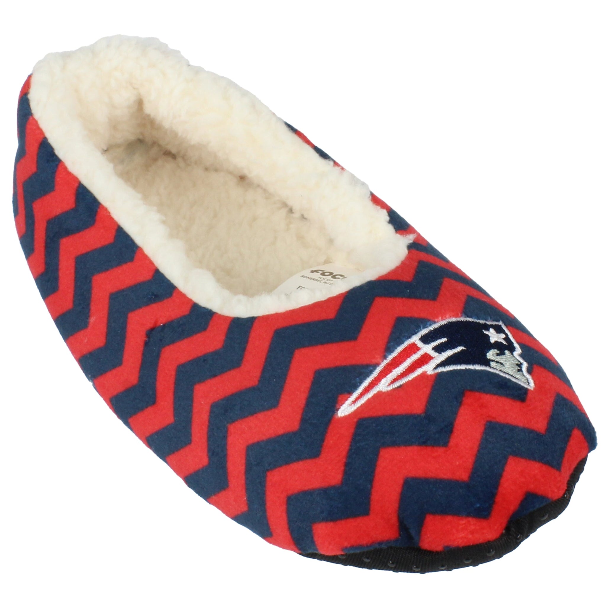 Comfy Feet's cute little chevron pattern slippers are a great, less expensive alternative to our big original slippers. Almost like a slipper sock with the thinner comfortable plush polyester lining, we stuffed a thin memory foam sole to give it a perfectly comfy footbed. The super colorful plush really give the slippers the finishing pop to go with the popular chevron pattern. Although, they are unisex, they are typically worn by the diehard women NFL fans. Sized MD - XL. Medium fits 4 to 5.5. Large fits 6 - 7.5. X-Large fits 8 - 9.5. Made in China. Comfy Feet slippers are officially licensed by FOCO.