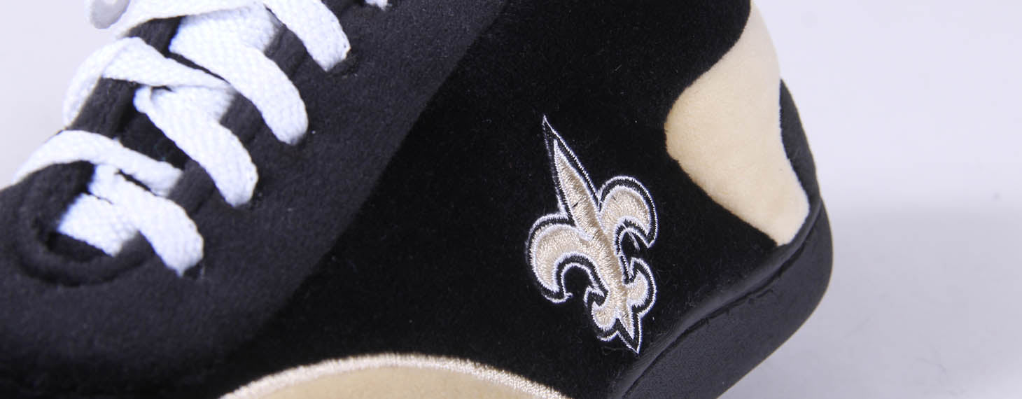 Cheering on the New Orleans Saints just got more FUN! Whether you are going to Mercedes-Benz Superdome, kicking back in your family room or bringing your favorite side dish to a tailgating party, you will really enjoy the warmth and comfort these slippers will bring you! Designed in the Saints classic Black and Gold colors with the official logo on the outer sides of each slipper and on the tongue.