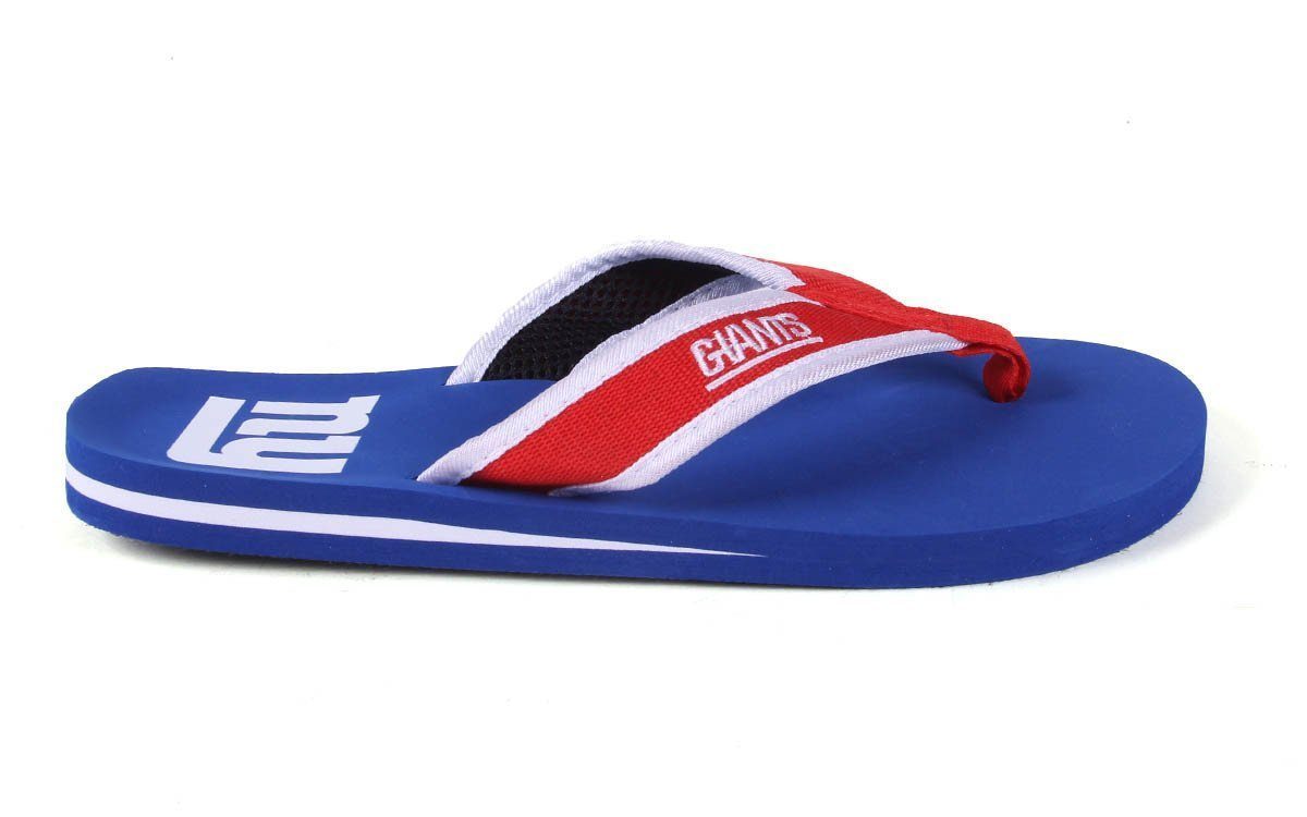 Support your New York Giants with these unisex Contour Flip Flops. These flip flops come in Blue and Red team colors and includes the lowercase NY in blue with red outline team logo. Makes the perfect gift! Bottom made of a super soft 100% EVA. Comfortable Nylon and Jersey material with Team Name Embroidered make up the straps.