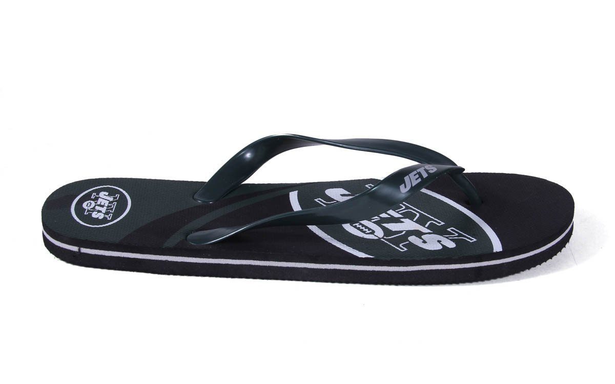 Support your New York Jets with these unisex Big Logo Flip Flops. These flip flops come in Dark Green and White team colors and include the "NY" and "Jets" in white inside dark green oval logo. Makes the perfect gift!