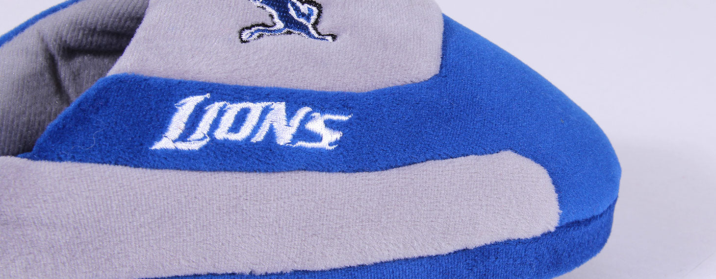 Hop out of bed and slip on some Detroit Lions PRIDE by wearing these super plush scuff slippers! Perfect for relaxing around the house and Guaranteed to be the softest and most comfy slippers you'll ever own! A pair of sweats, your favorite Lions sweatshirt and some new Detroit Lions slipper scuffs and you'll be ready to cheer on your team!