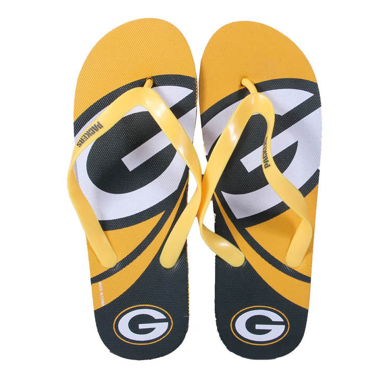 Support your Green Bay Packers with these unisex Big Logo Flip Flops. These flip flops come in Green and Yellow team colors and include the Packers team logo. Makes the perfect gift!