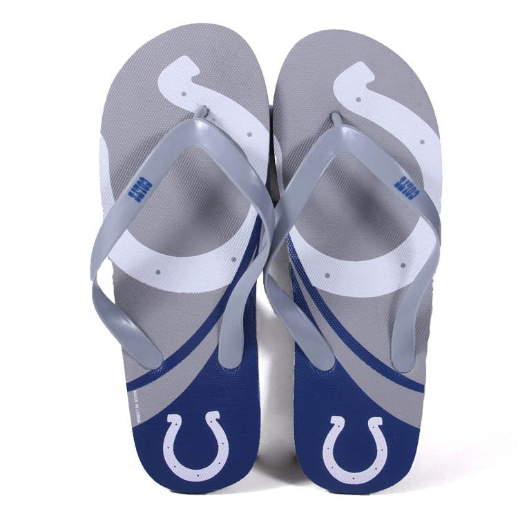 Support your Indianapolis Colts with these unisex Big Logo Flip Flops. These flip flops come in Blue and White team colors and include the Dark blue horseshoe logo. Makes the perfect gift!