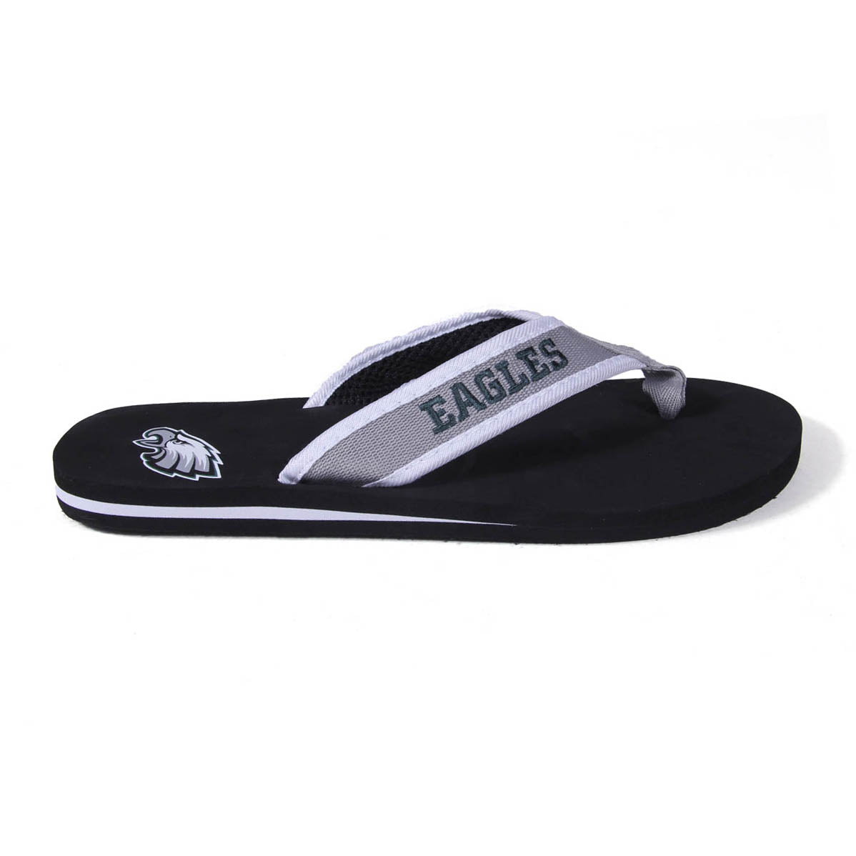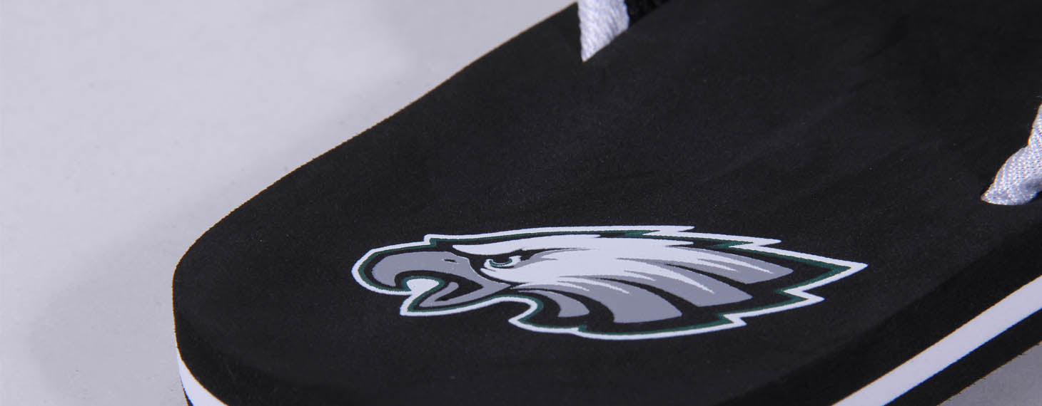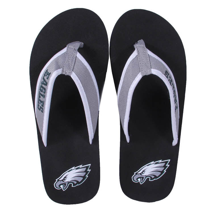 Support your Philadelphia Eagles with these unisex Contour Flip Flops. These flip flops come in Black and Red team colors and include a black and red falcon outlined in silver forming the letter F logo. Makes the perfect gift! Bottom made of a super soft 100% EVA. Comfortable Nylon and Jersey material with Team Name Embroidered make up the straps.