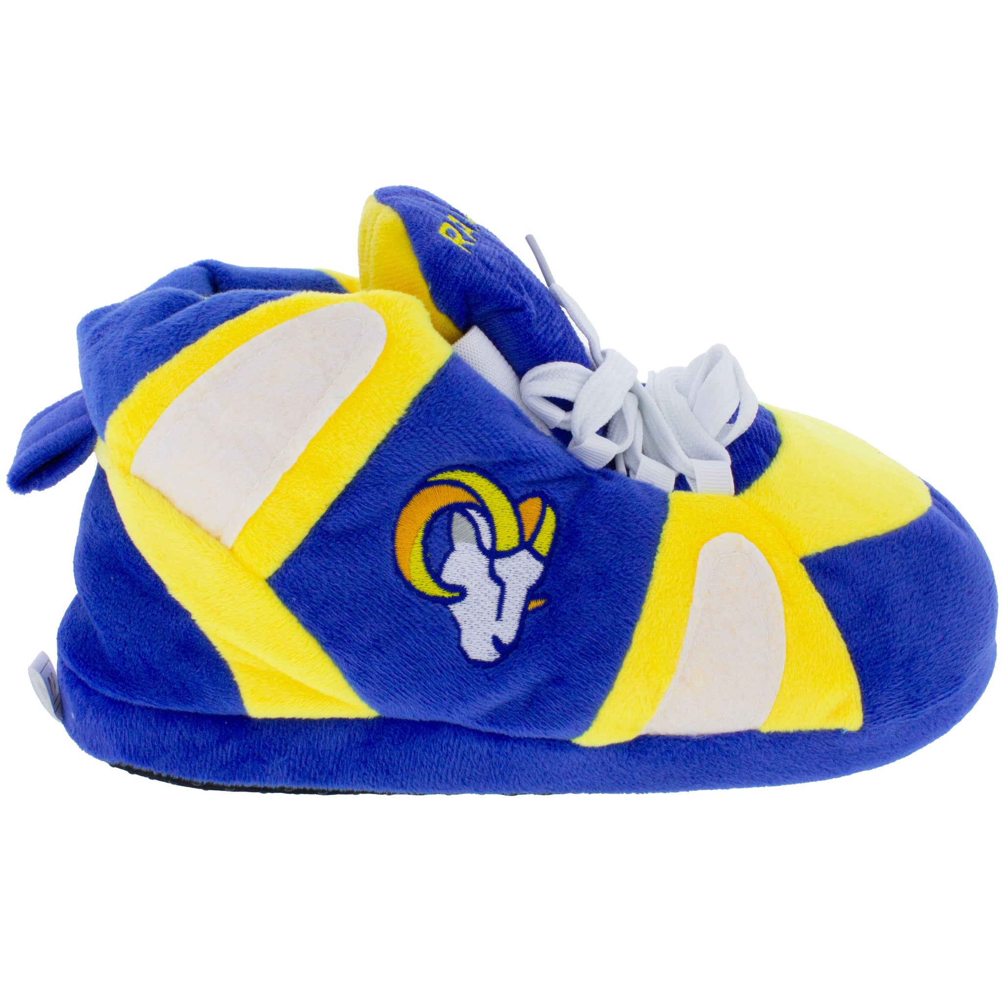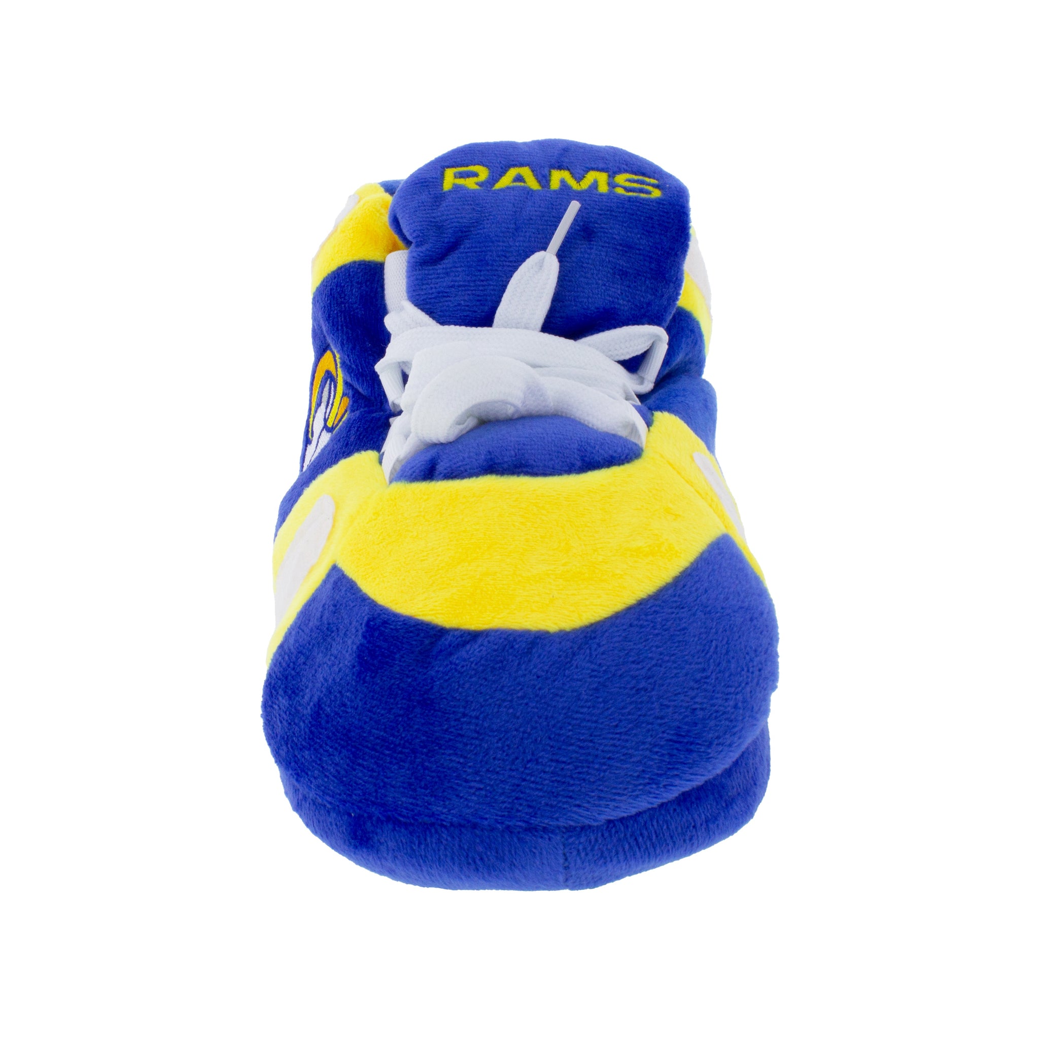 Join mascot Rampage and cheer on the Rams! Whether you are going to the game, kicking back in your family room or bringing your favorite side dish to a tailgating party, you will really enjoy the warmth and comfort these slippers will bring you! Designed in the Rams classic Blue and Gold colors with the official logo on the outer sides of each slipper and on the tongue.