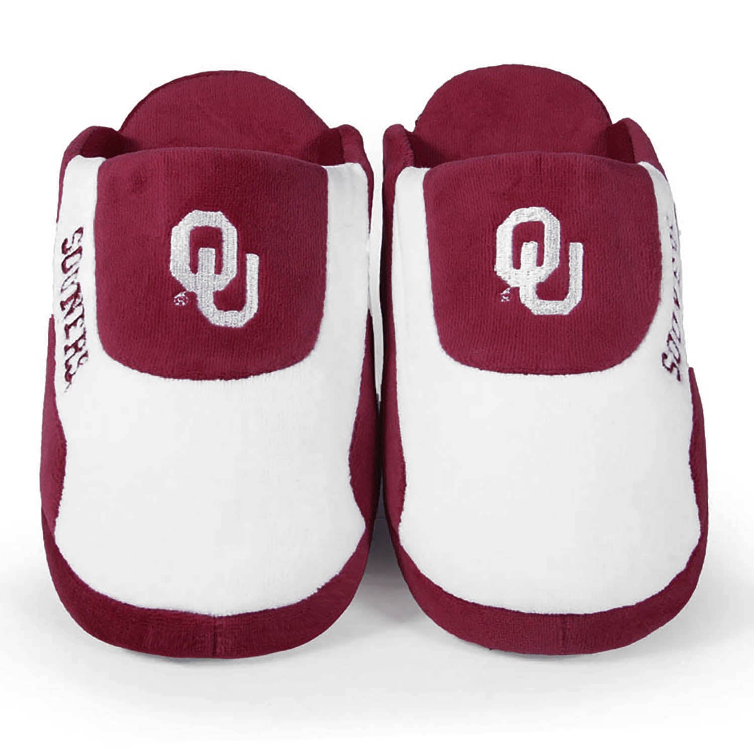 Roll out of bed and slip your feet into some Sooners PRIDE as you get ready for the big tailgating party or just a relaxing day watching football on your couch. These Happy Feet Low Pro Scuffs offer the same great comfort and quality as our Happy Feet Slippers just a more low profile, lightweight, slip-on design. Guaranteed to be a "by the bed" staple for all of our OU Fans! All slippers have the vibrant school colors and have the officially licensed Oklahoma Sooners logo on the side of the slippers.