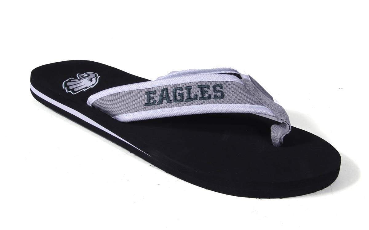 Support your Philadelphia Eagles with these unisex Contour Flip Flops. These flip flops come in Black and Red team colors and include a black and red falcon outlined in silver forming the letter F logo. Makes the perfect gift! Bottom made of a super soft 100% EVA. Comfortable Nylon and Jersey material with Team Name Embroidered make up the straps.