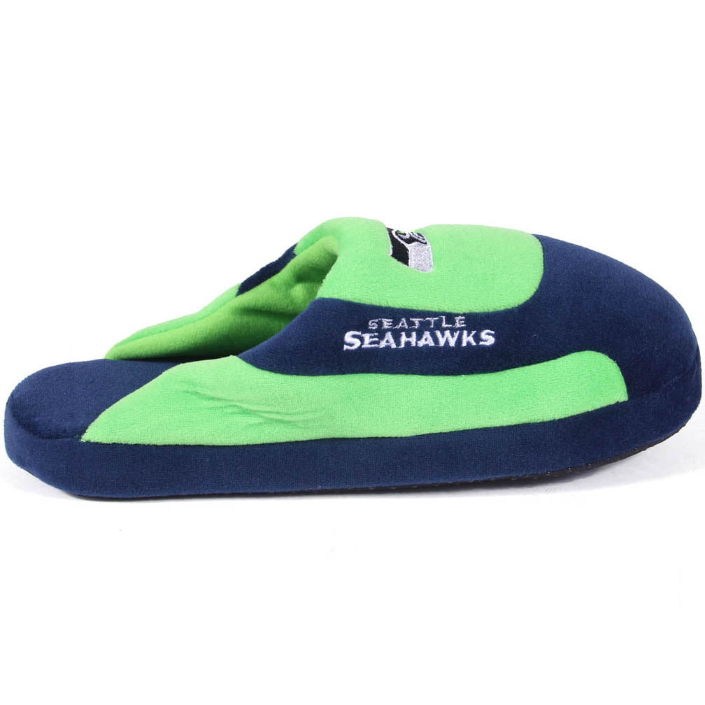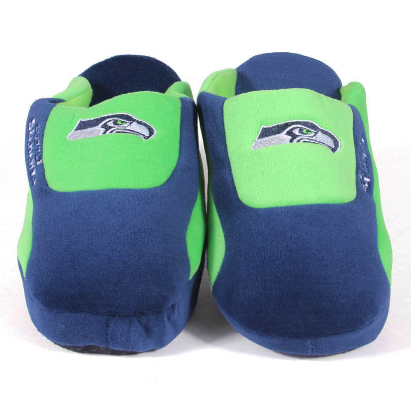 Hop out of bed and slip on some Seahawk PRIDE by wearing these super plush scuff slippers! Perfect for relaxing around the house and Guaranteed to be the softest and most comfy slippers you'll ever own! A pair of sweats, your favorite team sweatshirt and some new Seattle Seahawks slipper scuffs and you'll be ready to cheer on your team!