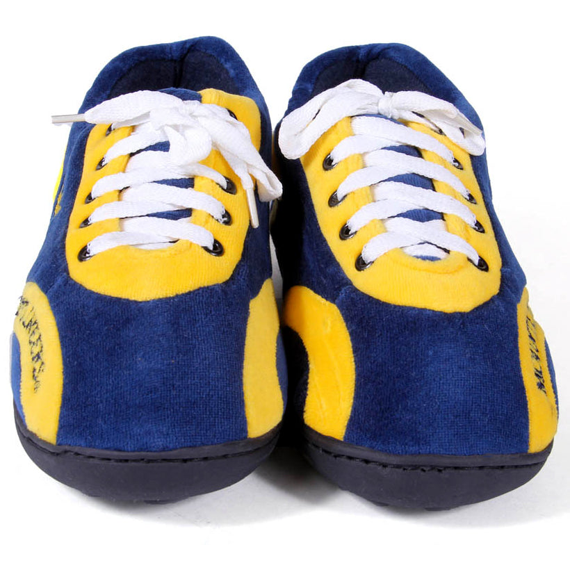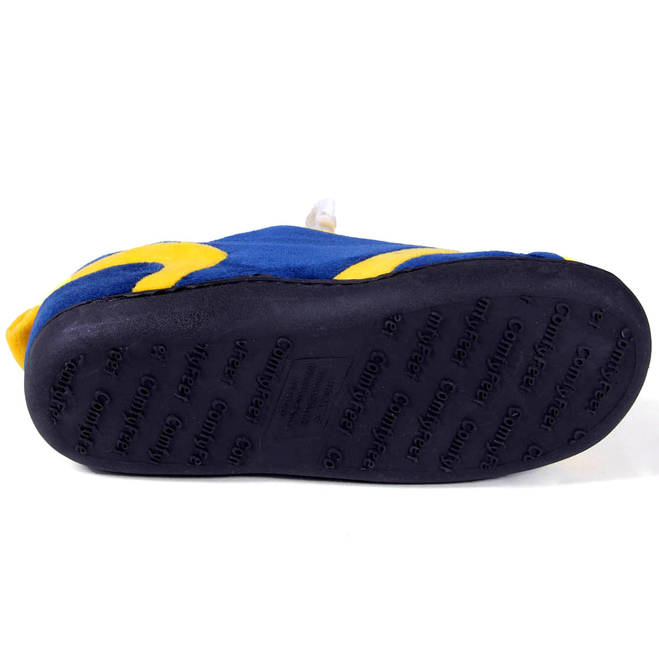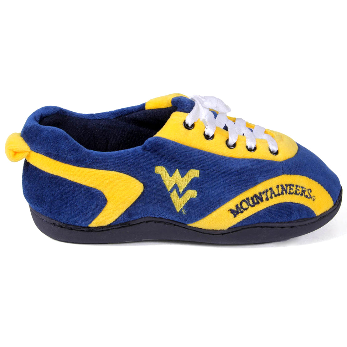 Cheer on the Mountaineers in these super cozy All Around Slippers! These WVU festive Slippers were designed to take you from your couch to class in comfort and style with their durable rubber-soled bottoms. These slippers give you the ability to run around and toss the football as well as stay snug and cozy. Same great comfort as our Happy Feet Slippers with brand new versatility! Whether you're heading to your couch or the stadium, these All Around slippers are perfect for any venue, and will put you on the cutting edge of sports fashion for years to come.